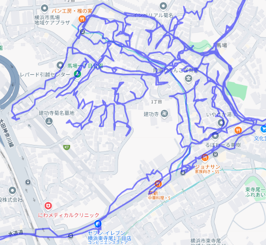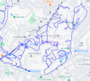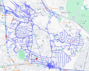 ※上図は馬場1丁目をポスティングした際のGPSデータです。