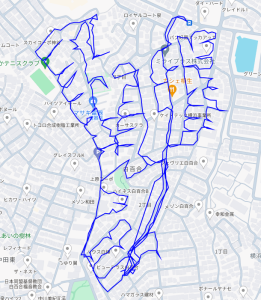 ※上図は寺谷1丁目をポスティングした際のGPSデータです。