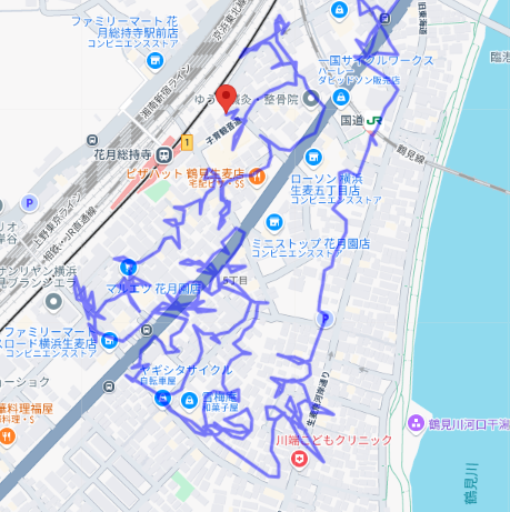 ※上図は生麦5丁目をポスティングした際のGPSデータです。