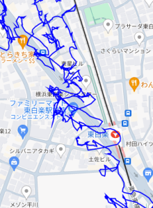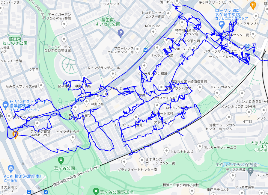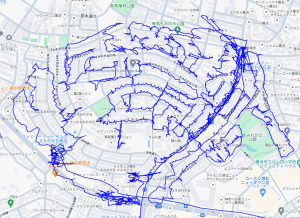 ※上図は茅ケ崎南5丁目をポスティングした際のGPSデータです。
