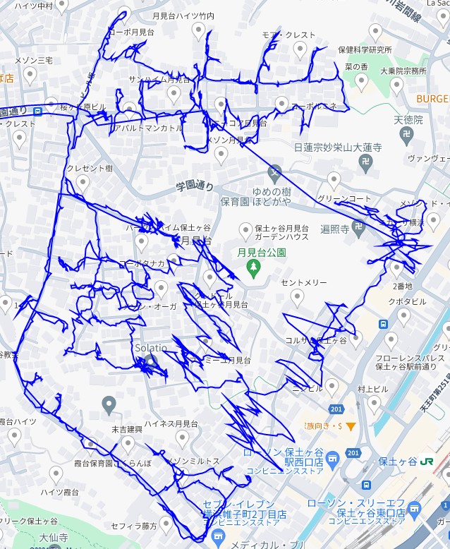 ※上図は月見台をポスティングした際のGPSデータです。