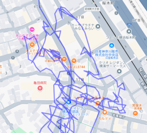 ※上図は長津田みなみ台2丁目をポスティングした際のGPSデータです。