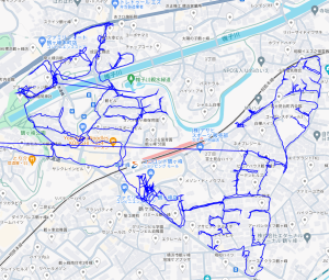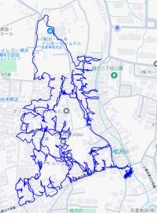 ※上図は榎が丘をポスティングした際のGPSデータです。