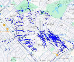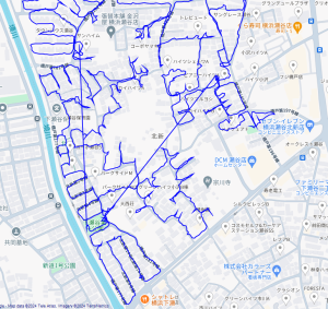 ※上図は浅間町1丁目をポスティングした際のGPSデータです。