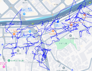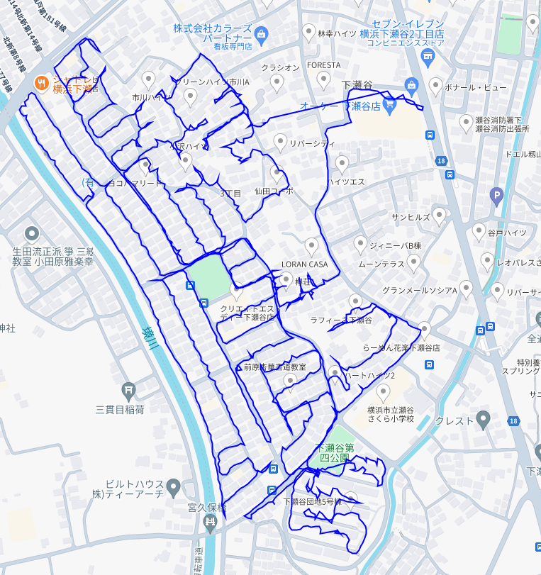 ※上図は下瀬谷3丁目をポスティングした際のGPSデータです。