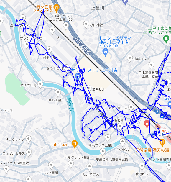 ※上図は上星川3丁目をポスティングした際のGPSデータです。