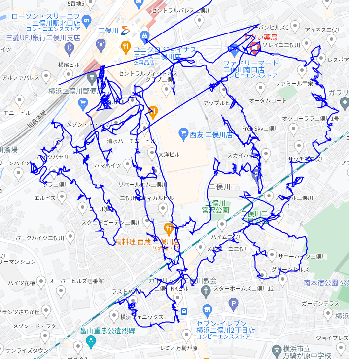 ※上図は二俣川2丁目をポスティングした際のGPSデータです。