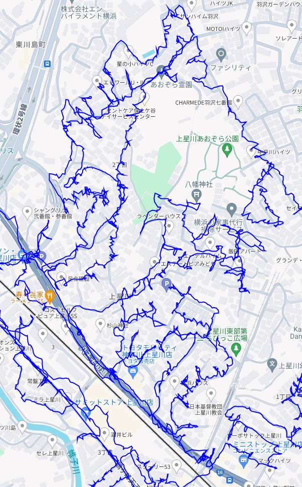 ※上図は上星川2丁目をポスティングした際のGPSデータです。