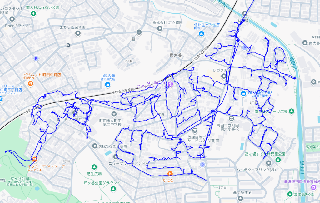 ※上図は町田市南太田1丁目をポスティングした際のGPSデータです。