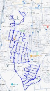 ※上図は阿久和西2丁目をポスティングした際のGPSデータです。