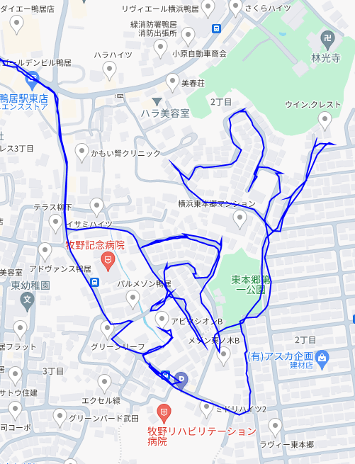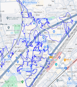 ※上図は鴨居2丁目をポスティングした際のGPSデータです。