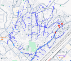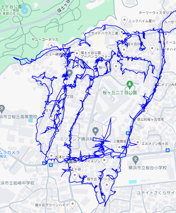 ※上図は桜ヶ丘1丁目をポスティングした際のGPSデータです。