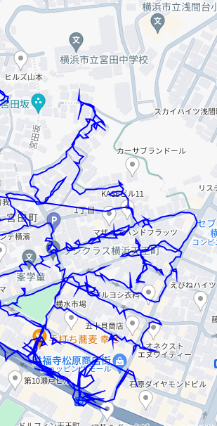 ※上図は宮田町1丁目をポスティングした際のGPSデータです。