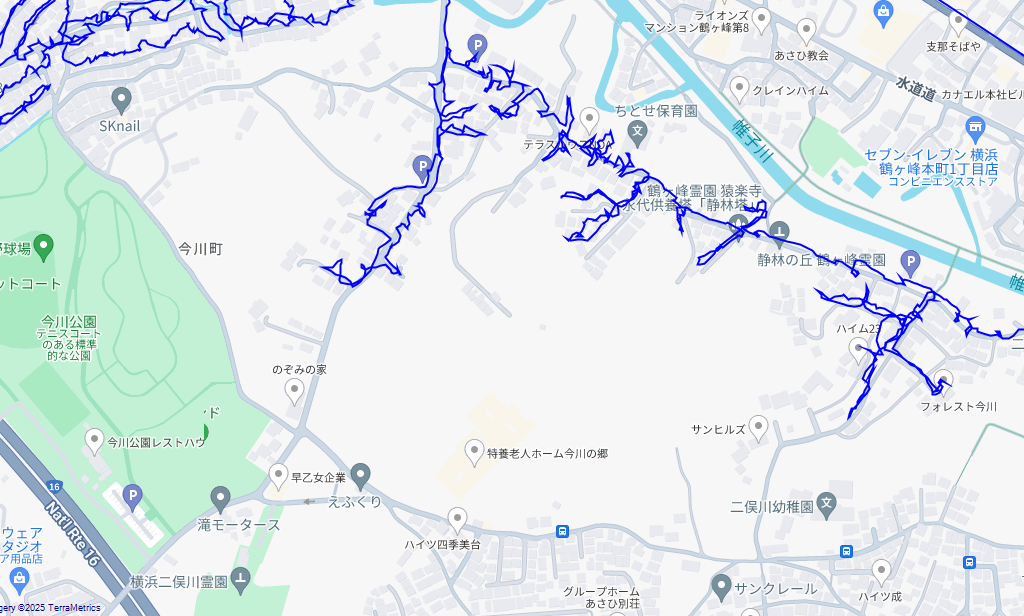 ※上図は今川町をポスティングした際のGPSデータです。