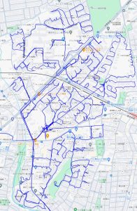 ※上図は西成瀬2丁目をポスティングした際のGPSデータです。