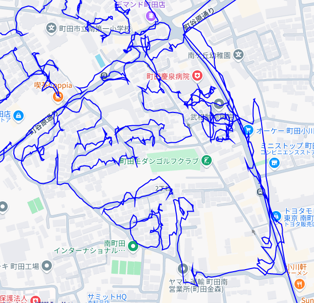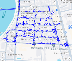 ※上図は南町田2丁目をポスティングした際のGPSデータです。