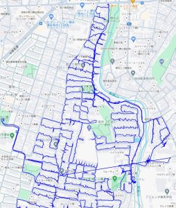 ※上図は鶴ヶ峰2丁目をポスティングした際のGPSデータです。