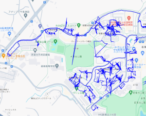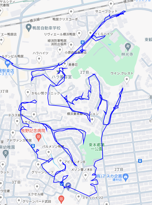 ※上図は鴨居2丁目をポスティングした際のGPSデータです。