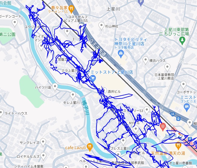 ※上図は上星川3丁目をポスティングした際のGPSデータです。