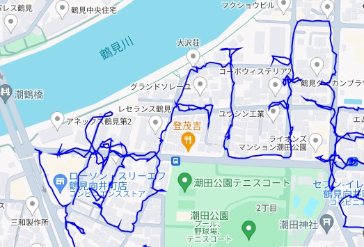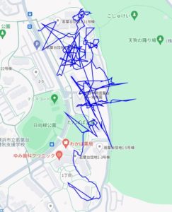 ※上図は向井町1~2丁目をポスティングした際のGPSデータです。