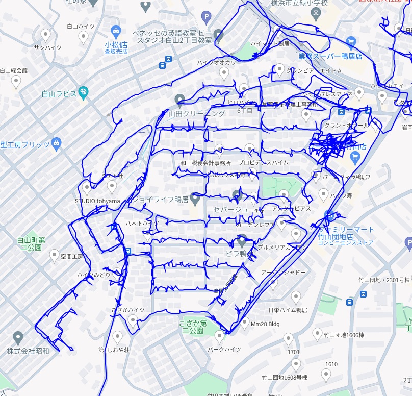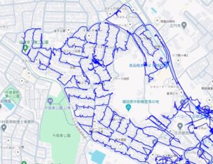 ※上図は鴨居6~7丁目をポスティングした際のGPSデータです。