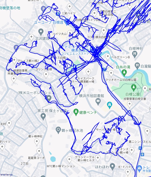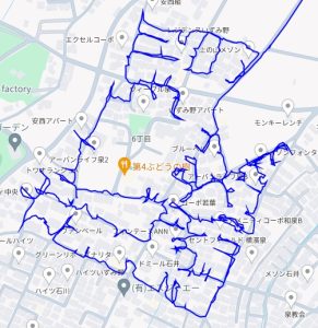 ※上図は白根4丁目をポスティングした際のGPSデータです。