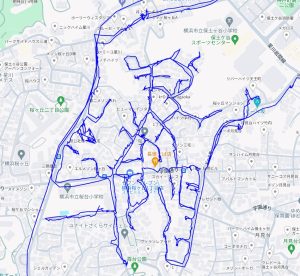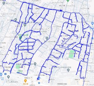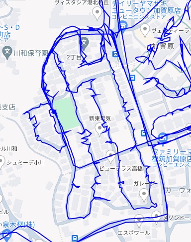※上図は加賀原2丁目をポスティングした際のGPSデータです。