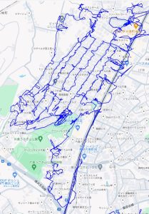 ※上図は日吉本町4丁目をポスティングした際のGPSデータです。