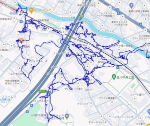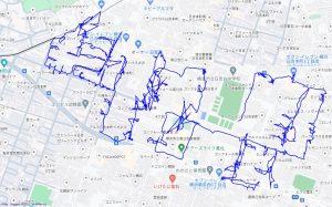 ※上図は三ツ沢南町と三ツ沢東町をポスティングした際のGPSデータです