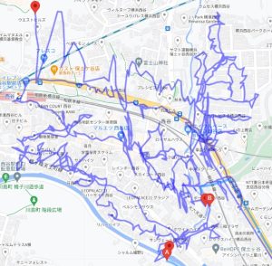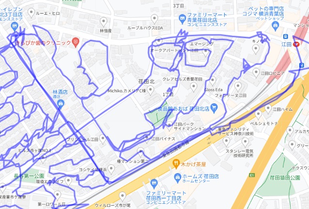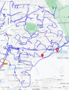 ※上図は荏田北1丁目をポスティングした際のGPSデータです。