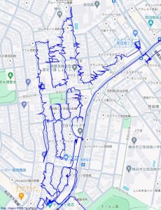 ※上図は上反町2丁目をポスティングした際のGPSデータです。