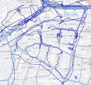 ※上図は篠原東1丁目をポスティングした際のGPSデータです。