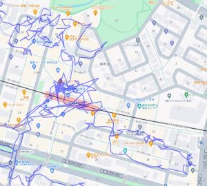 ※上図は菊名2丁目をポスティングした際のGPSデータです。