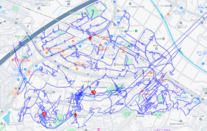 ※上図は荏田南3丁目をポスティングした際のGPSデータです。