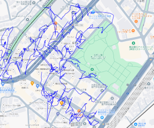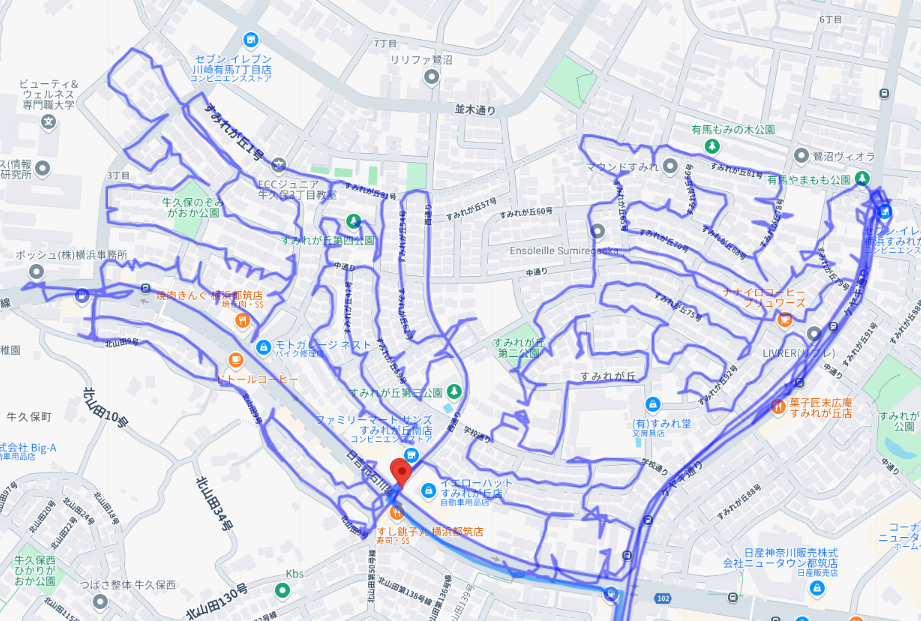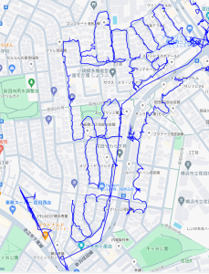 ※上図はすみれが丘をポスティングした際のGPSデータです。