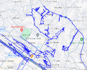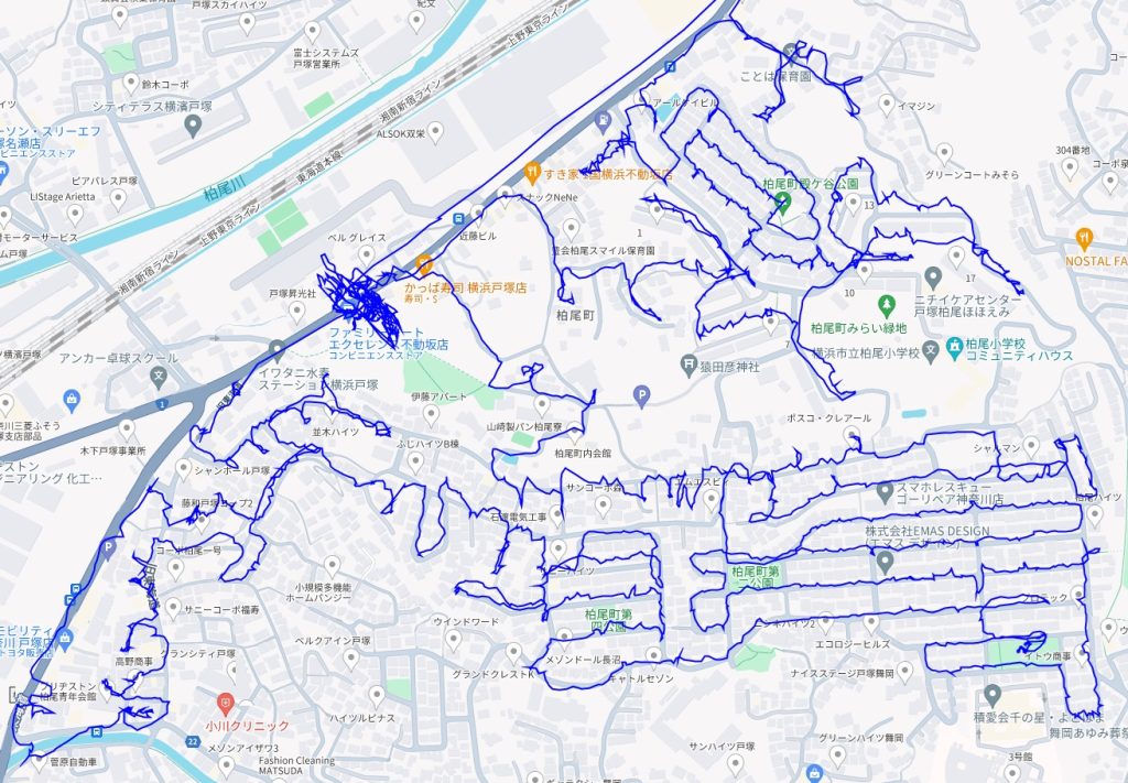 ※上図は柏尾町をポスティングした際のGPSデータです。